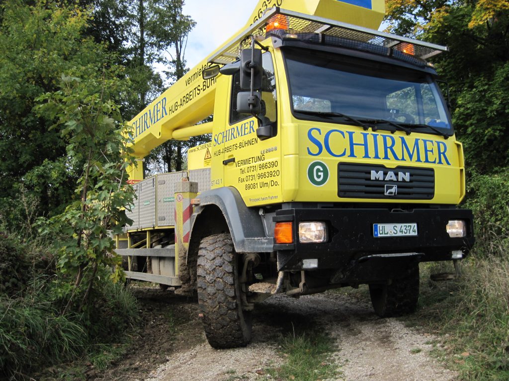 - Durchführung der Arbeiten mit zwei geländegängigen Hubsteigern bis 48m Korbhöhe